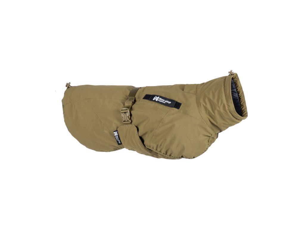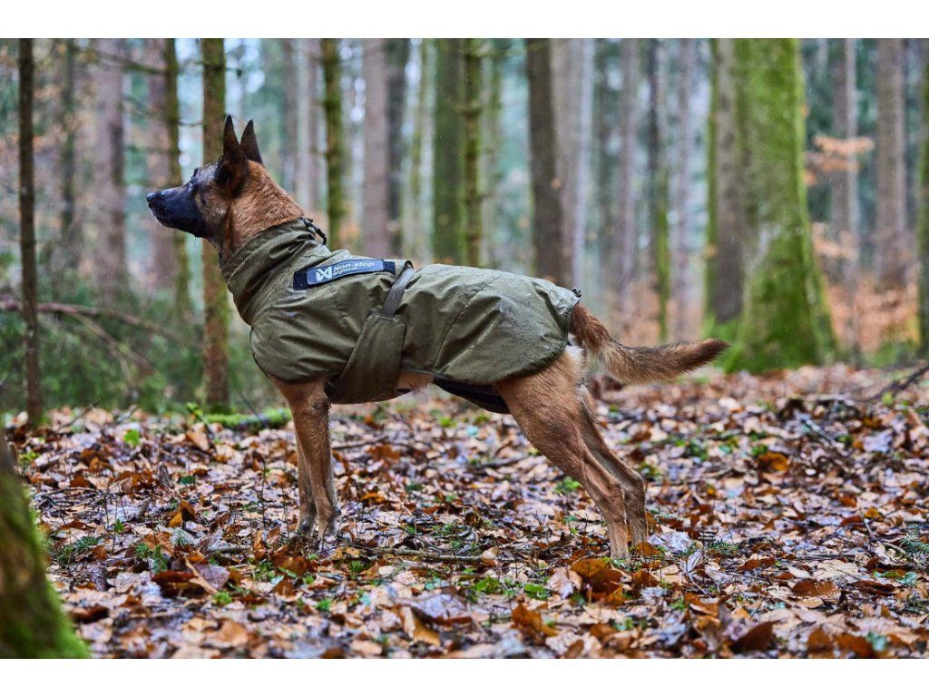 Glacier jacket 2.0 WD je obdobou zimní bundy Glacier 2.0, ale patří k odolné edici Working Dog, která je určena pro vojenské, policejní a záchranářské psy, ale hodí se i pro hafany v jiném vysokém pracovním nebo sportovním výkonu. Tato bunda poskytuje nadstandardní ochranu před nepříznivými povětrnostními podmínkami, větruodolné a vodoodpudivé provedení totiž uchová psa v teple, takže se dál může soustředit na svůj sportovní nebo pracovní výkon. Zároveň je její střih uzpůsoben tak, aby psa neomezoval v přirozeném pohybu. Bunda má drenážní otvory na hrudníku a také dva otvory k připnutí za postroj i za obojek. Gumičkové popruhy v zadní části se dají provléknout za zadní nohy psa, aby se bunda neodhrnovala ani za větrného počasí nebo za běhu. Pomocí gumičky u kořene ocasu bundu také přizpůsobíte postavě psa. Na hrudníku najdete suché zipy, ke kterým můžete připevnit své vlastní nášivky třeba s vaším kontaktem, jménem psa nebo jeho pracovním zařazením.