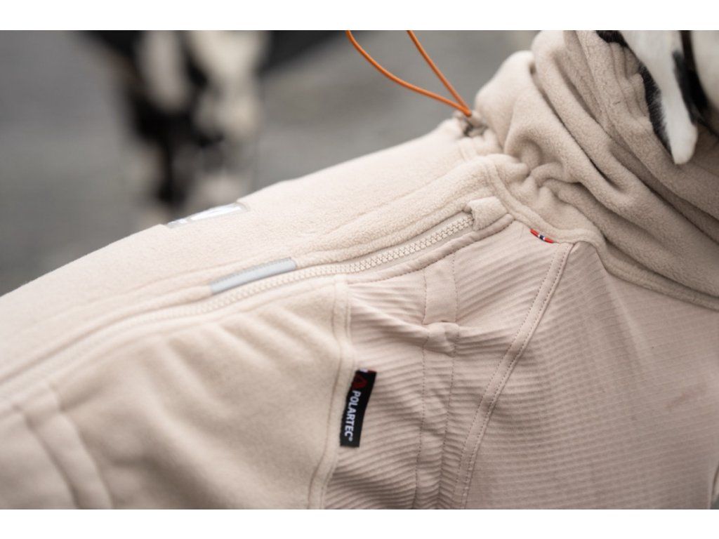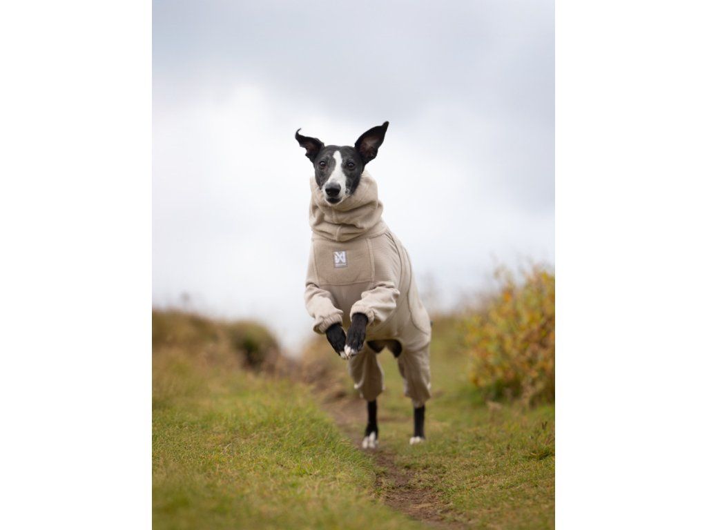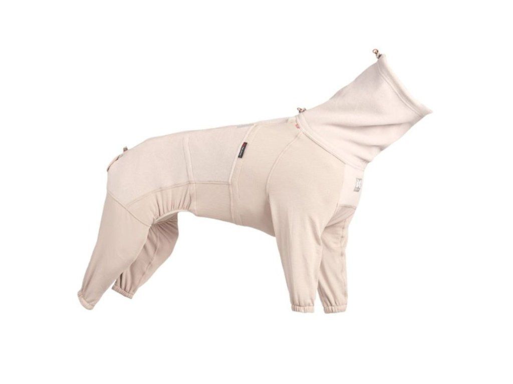 Trail quest fleece overall je celotělový psí obleček pro chladné a suché podmínky. Využívá Polartec® fleece v kombinaci s prodyšnými grid panely na hrudi, břiše a nohách, které zajišťují prodyšnost a regulaci teploty. Pět nastavitelných bodů a elastické manžety umožňují ideální přizpůsobení velikosti. Overal se snadno obléká díky YKK® zipu a patentce, reflexní prvky 3M™ zvyšují bezpečnost při snížené viditelnosti. Overall lze nosit samostatně nebo jako spodní vrstvu pod nepromokavou pláštěnku. Hodí se například pro krátkosrstá plemena, psy bez podsady nebo jedince citlivé na chlad.