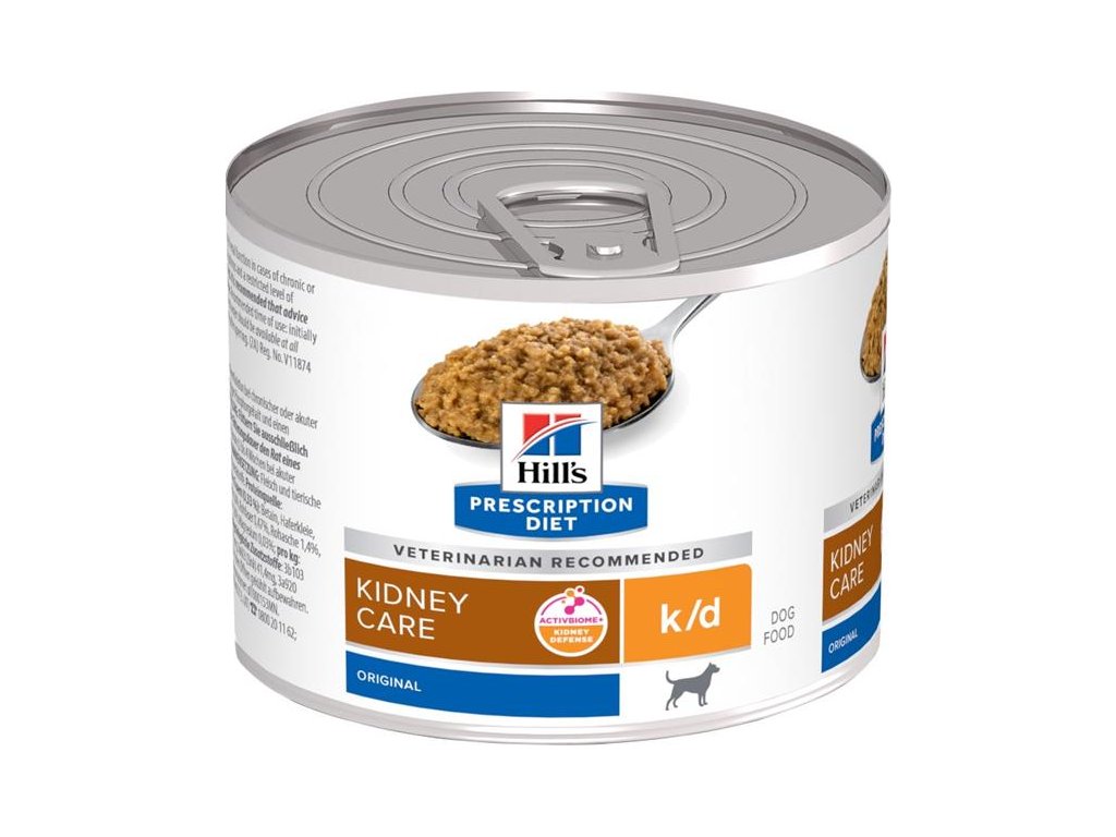 Konzerva Hill's PRESCRIPTION DIET k/d je kompletní dietetické krmivo pro podporu funkce ledvin v případech chronické nebo dočasné renální nedostatečnosti u dospělých psů. Krmivo má nízký obsah fosforu a omezený obsah bílkovin, avšak vysoce kvalitních.