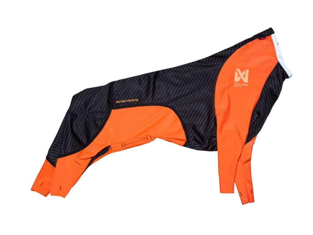 Protector snow je celotělový zimní obleček chránící psa před chladem, ale hlavně před sněhem, který zejména na dlouhosrstých psech vytváří zmrzlé kuličky. Některým psům tyto kuličky při chůzi vadí natolik, že si je začnou vykusovat, a proto je vhodné jejich srst před sněhem zakrýt. Materiál oblečku sice není zateplený, ale sedí na těsno, což izoluje psa před větrem a chladem. Také pruží ve všech směrech, abyste do oblečku psa mohli lépe obléct. Výrazná oranžová barva spolu s reflexními prvky zajistí skělou viditelnost psa i za zhoršených světelných podmínek. Obleček se vyrábí ve dvou různých střizích, aby respektoval odlišné způsoby vylučování u fen a psů.