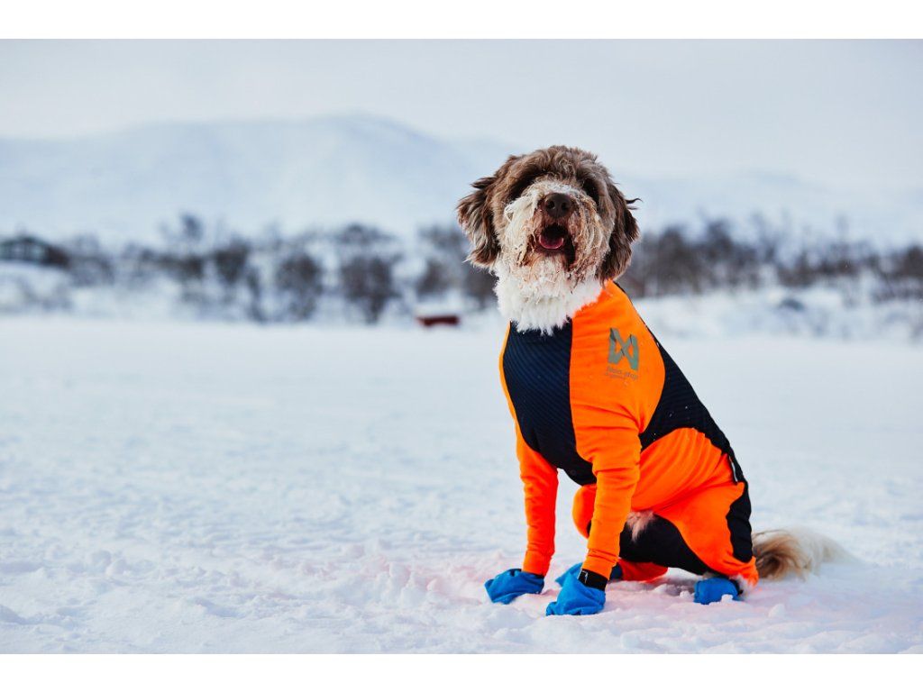 Celotělový obleček určený do sněhu a do chladného počasí. Chrání dlouhou srst před vznikem zmrzlých kuliček.