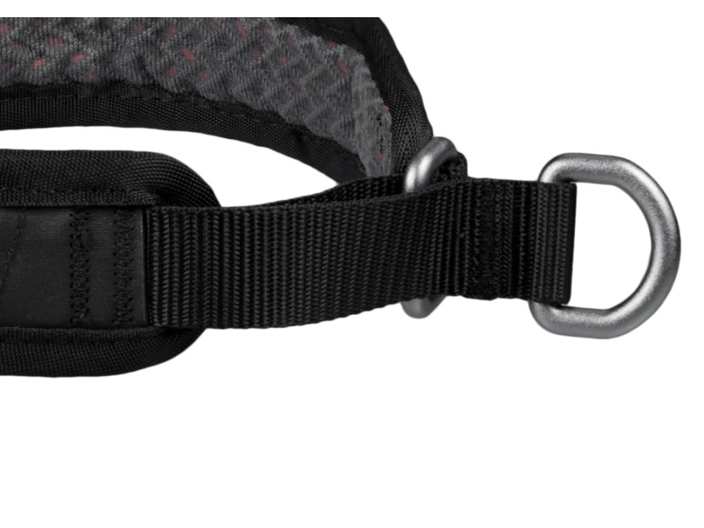 - D-kroužek, ke kterému je vodítko připevněno, je lehký, aniž by byla ohrožena pevnost.