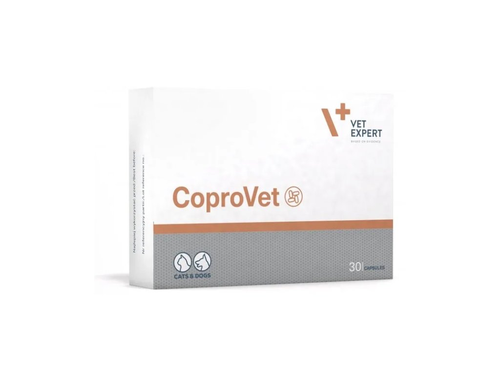 CoproVet je přípravek, který zabraňuje nejčastějším příčinám konzumace výkalů zvířat, tj. fenoménu koprofágie. CoproVet podporuje správné trávicí procesy, doplňuje a stimuluje přirozenou mikroflóru trávicího traktu a pomáhá snižovat nepříjemný zápach.