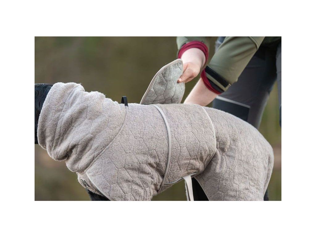 Funkční psí župan s dvouvrstvou konstrukcí, která zajišťuje efektivní sušení srsti. Díky chytrému střihu s maximálním pokrytím a snadnému zapínání je vhodný pro všechny typy psů.